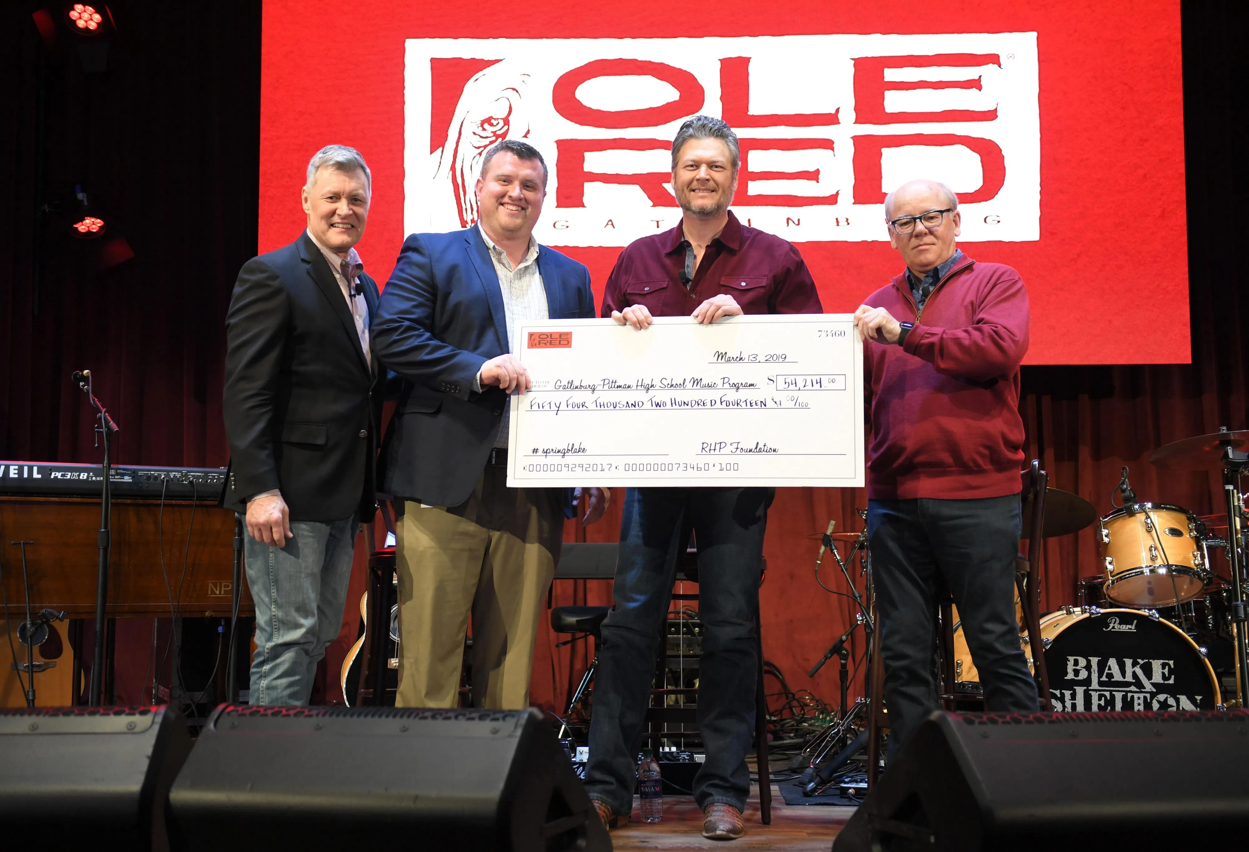 On March 13, Blake took part in the festivities by performing a private concert that raised $29,214 via tickets sales for Gatlinburg-Pittman High School’s music programs. Ryman Hospitality Properties donated an additional $25,000 to bring the total to $54,214.